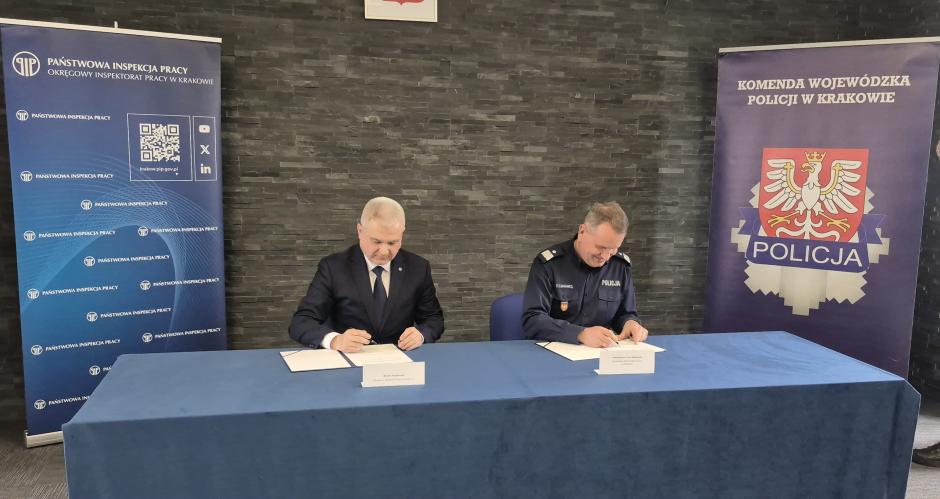 2 kwietnia zawarliśmy porozumienie o współpracy pomiędzy Okręgowym Inspektoratem Pracy w Krakowie a Komendą Wojewódzką Policji w Krakowie.