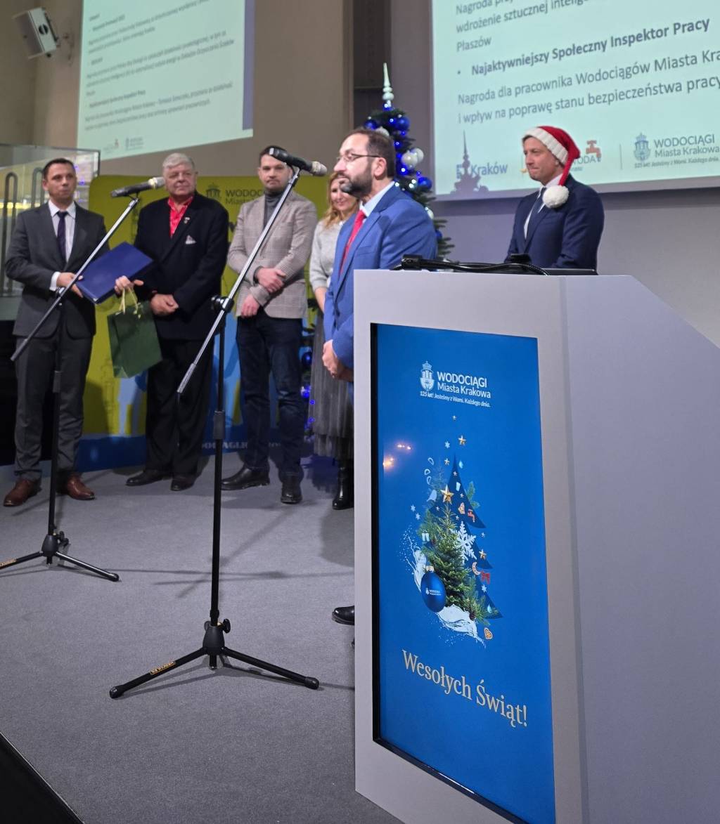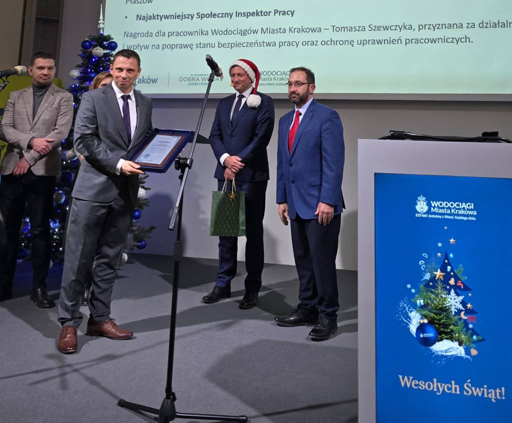 Tomasz Szewczyk Społeczny Inspektor Pracy w Wodociągach Miasta Krakowska, 18.12.2025 r. odebrał wyróżnienie Głównego Inspektora Pracy za udział w Ogólnopolskiej Edycji Konkursu Państwowej Inspekcji Pracy na Najaktywniejszego SIP.